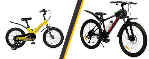 - Детские велики. Оснащаются рамами небольшого размера и рассчитаны на установку колес небольшого диаметра: 13-14-16 дюймов. Особо «мелкие» модели оснащаются дополнительными боковыми колесами, не позволяющие детям при покатушках переворачиваться!
